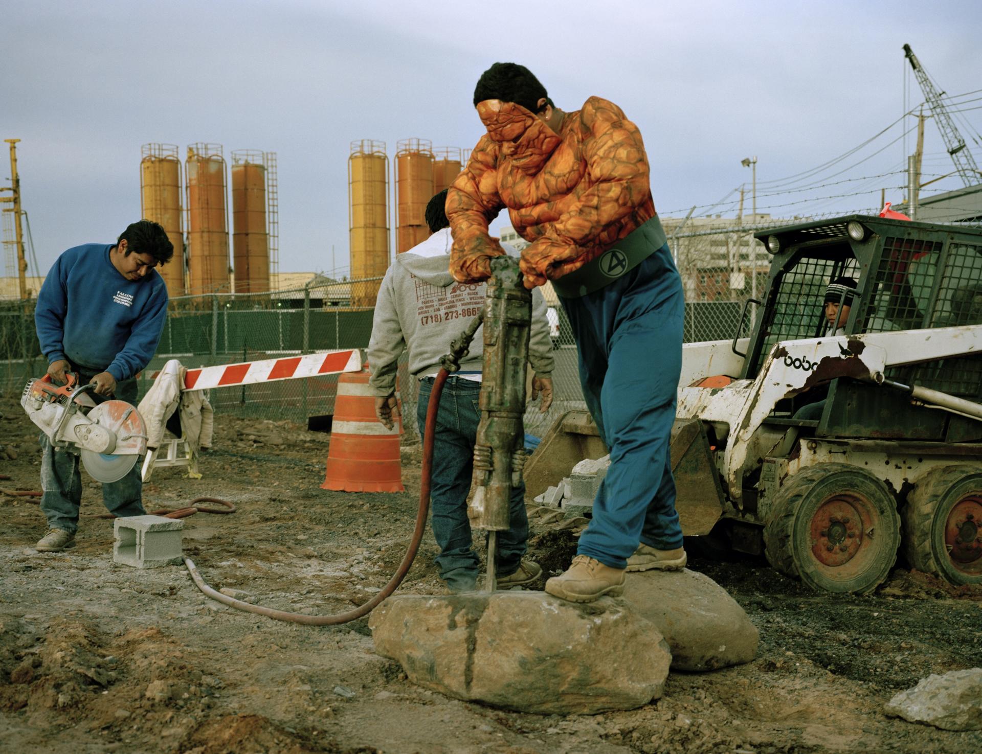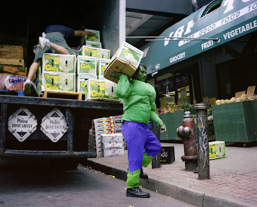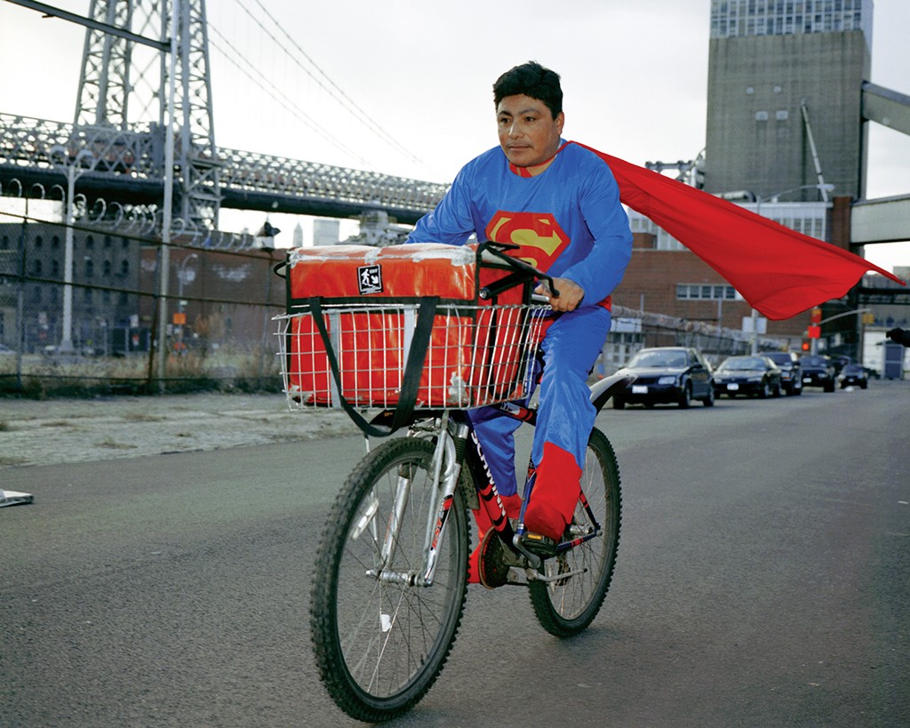그는 미국에서 일하며 본국 가족을 부양하는 외국인 이주 노동자들에게 슈퍼히어로 복장을 입히고, 그들이 매달 가족에게 보내는 금액을 함께 사진으로 기록했습니다.