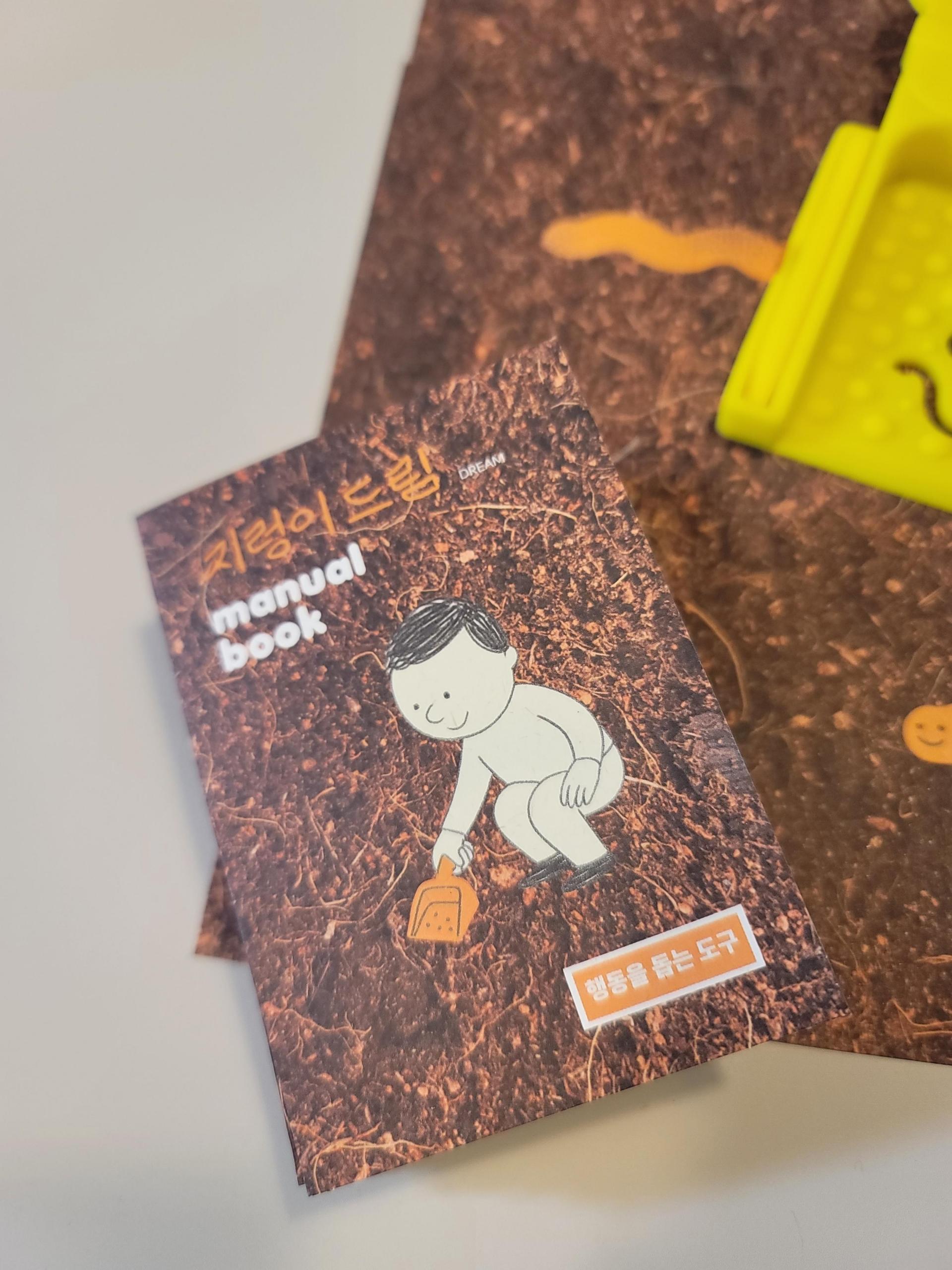 그래서 탄생한 것이 지렁이드림입니다. 지렁이드림은 쓰레받기 형태로 되어 있어서 지렁이를 살짝 담아서 안전하게 흙으로 옮길 수 있습니다. 공간이 넓기 때문에 지렁이가 꿈틀거려도 잘 떨어지지 않습니다.
