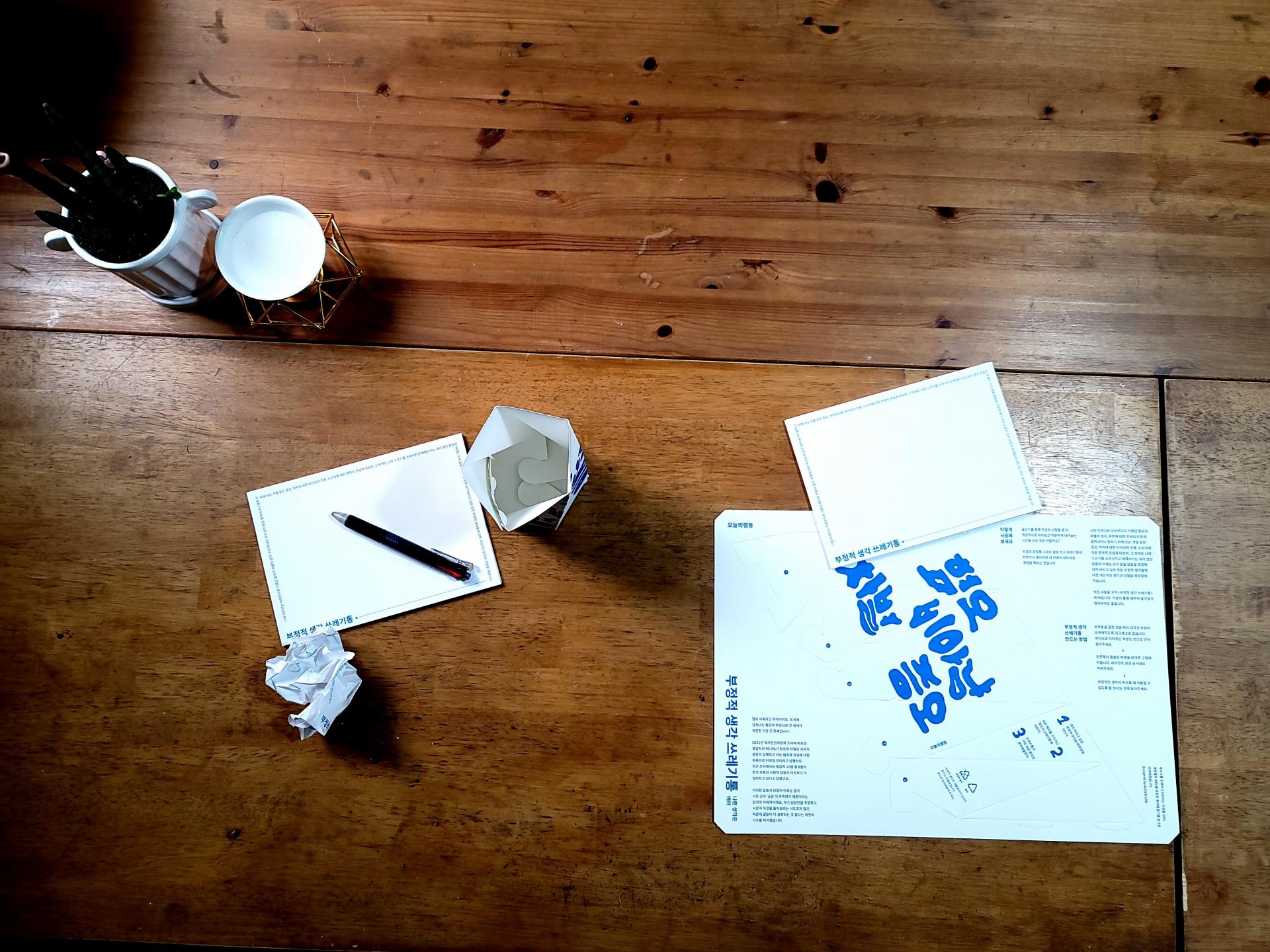 적은 내용을 구겨 <부정적 생각 쓰레기통> 생각, 주변에 대한 무관심과 방관, 밀쳐내거나